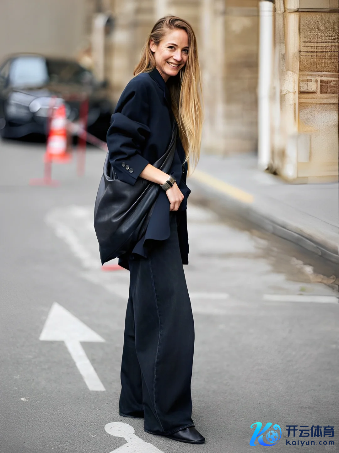你会看到许多文静女士的街拍,都爱穿一条大号的阔腿裤,弱化了修饰体魄的推敲,在宽松的裤管里门径生风、坚硬恬逸。
