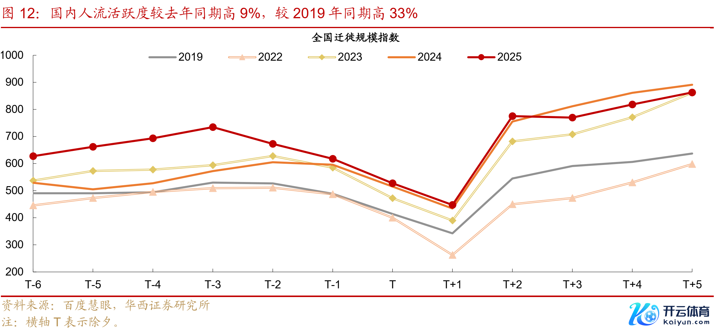 第二,出行东谈主流量活跃度高于往年,境外游持续升温。2025年春节时间,国内东谈主流量活跃度同比擢升9%,较2019年同期进步33%。细分来看,铁路、公路和民航日均客运量均高于2024年和2019年同期,水路客运量高于2024年同期,但仍未归附至2019年水平。国内施行航班数同比增2%,国际施行航班数同比增28%,境外游持续升温。