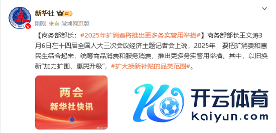 商务部部长王文涛3月6日在十四届宇宙东谈主大三次会议经济主题记者会上说,2025年,要把扩阔绰和惠民生聚拢起来,统有计划品阔绰和处事阔绰,推出更多求实管用举措。其中,以旧换新“加力扩围、惠民升级”,扩大换新补贴的品类范围。